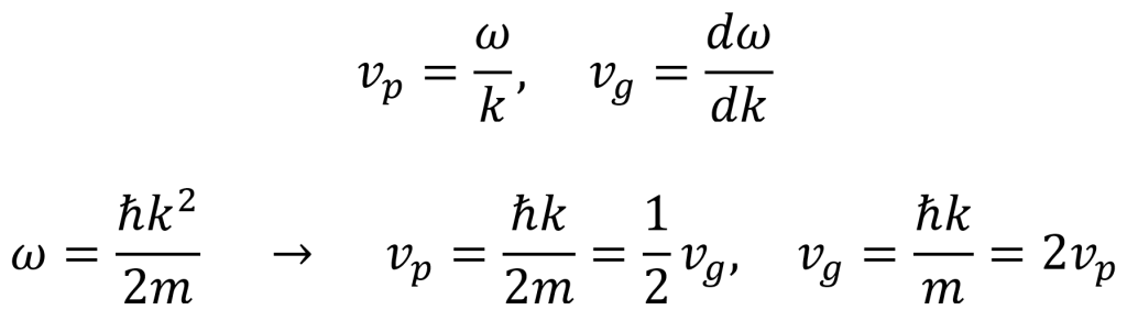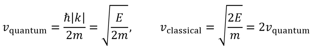 The speed of these propagating waves can be found by dividing the coefficient of t (which is ћk2/2m) by the coefficient of x (which is k). Since this is speed, the direction of the wave does not matter, so one can take the absolute value of k. By contrast, the speed of a classical particle is found by solving E = 0.5mv2, which gives a puzzling result that is twice as fast as the quantum particle.