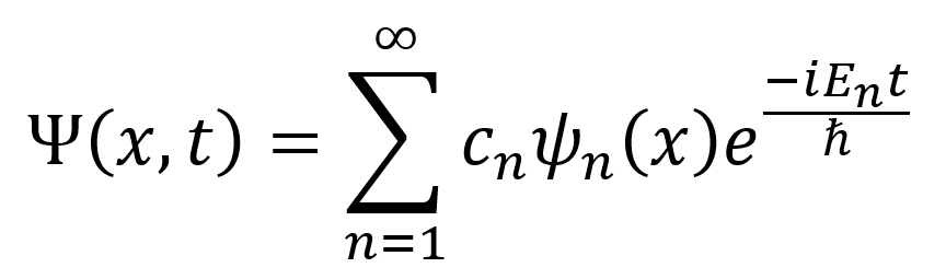 Physically, |cn|2 represents the probability that a measurement of the system’s energy would return a value of En. As such, an infinite sum of all the |cn|2 values is equal to 1. In addition, note that each Ψn(x,t) = ψn(x)e–iEnt/ℏ is known as a stationary state. The reason these solutions are called stationary states is because the expectation values of measurable quantities are independent of time when the system is in a stationary state (as a result of the time-dependent term canceling out).