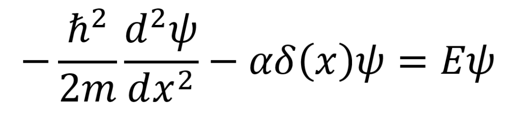 The delta-function well is a potential of the form –αδ(x) where α is a positive constant. As a result, the time-independent Schrödinger equation for the delta-function well system is given as follows. This equation has solutions that yield bound states when E < 0 and scattering states when E > 0.