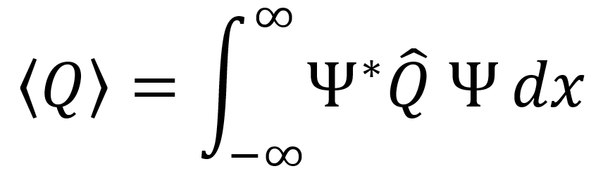 To compute the expectation value for a measurable quantity Q in quantum mechanics, the following equation is used. Here, Ψ is the time-dependent wave function, Ψ* is the complex conjugate of the time-dependent wave function, and Q̂ is the operator corresponding to Q.