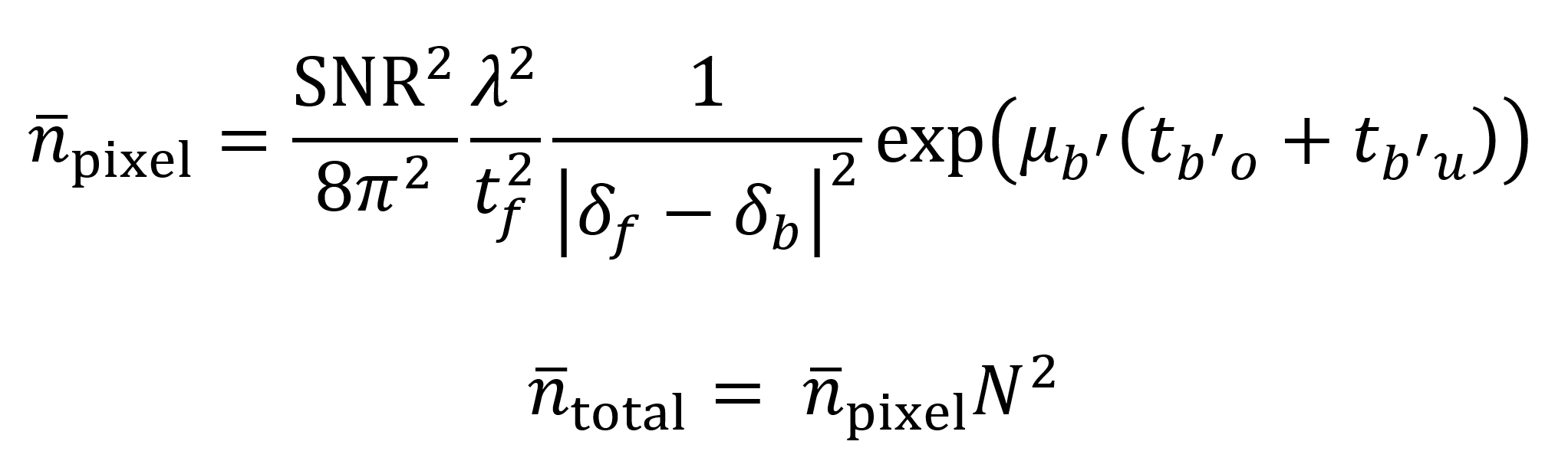 npixel_absorption = ((snr^2)/(8*pi^2)).*((lamda.^2)./(tf.^2)).*(((abs(betaf-betab)).^-2)).*exp(mupb.*(tbo+tbu));