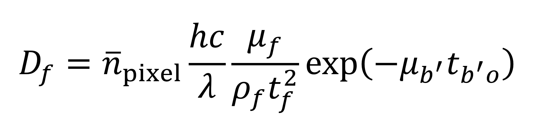 radiation_dose_npixelDf = npixel_phase.*(hc./lamda).*(muf./(rhof.*(tf.^2))).*exp(-mupb*tbo); % units of eV/g
