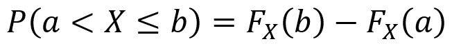 One can also use CDFs as follows to find the probability that X produces an outcome between two values a and b for which a ≤ b. Note that it is important to pay attention to when the “<” and “≤” symbols can be used.