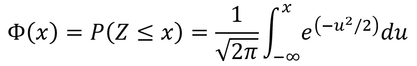 The standard normal distribution has E[Z] = 0 and Var(Z) = 1. The CDF Φ(x) of the standard normal distribution is given by the following equation.