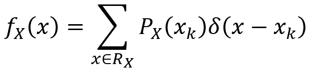 By using the Dirac delta function, one can define a generalized PDF for a discrete random variable as follow. For the random variable X here, the range RX = {x1,x2,x3,…} and the PMF is PX(xk).
