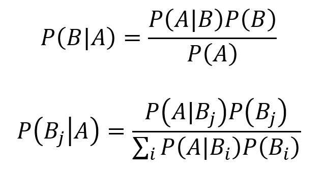Bayes theorem represents an extremely important and widely consequential tool for conditional probability. Learning the intuition behind Bayes theorem can be highly valuable. The equation for Bayes theorem with two events A and B where P(A) ≠ 0 is given by the first equation below. The equation for Bayes theorem with n events B1, B2, B3… which partition the sample space S while P(A) ≠ 0 is given by the second equation below.