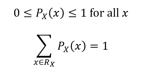 In addition, for any set A which is a subset of RX, the probability that X ∈ A is given as the sum of the probabilities of X for each element of A.